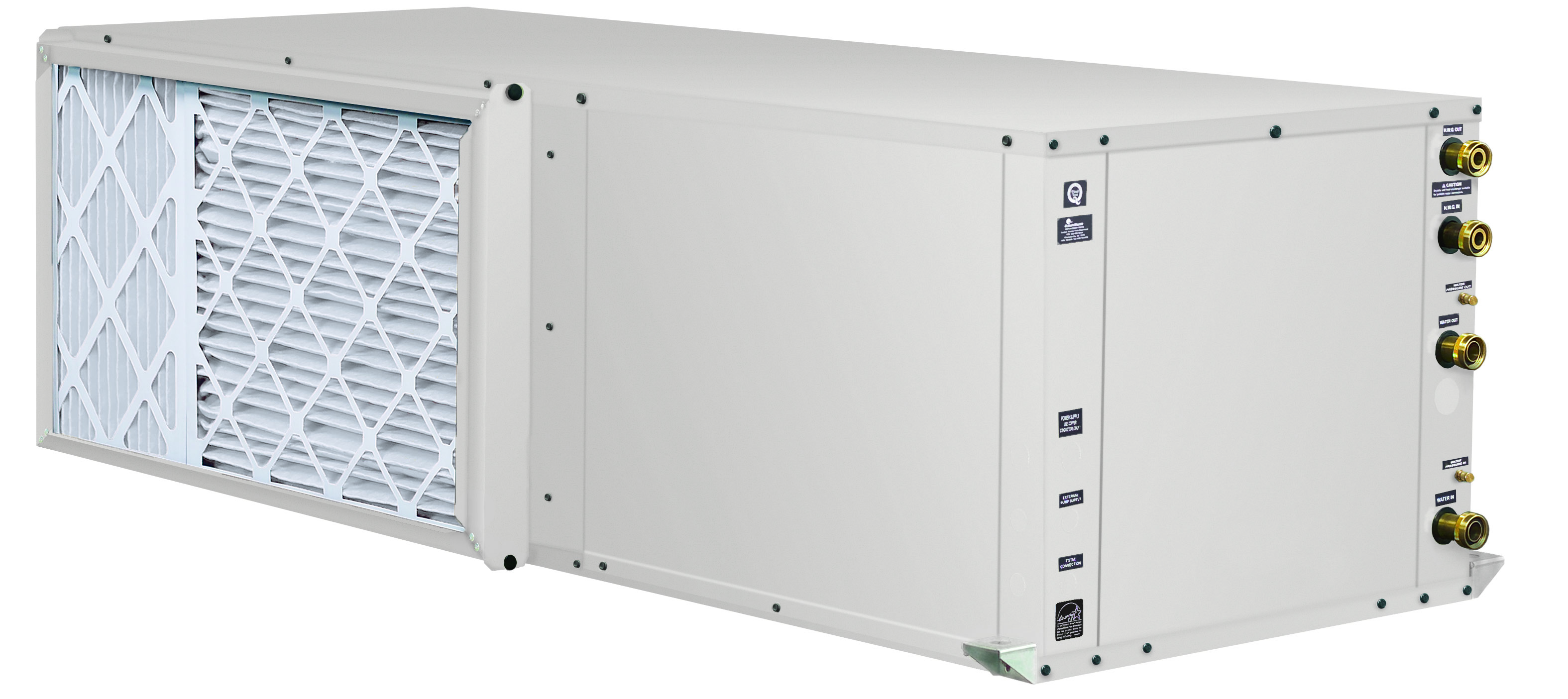 The electronic controller links thermostat, fan motor, and compressor staging for set-up and operational data. Includes performance monitoring system, and large filter.