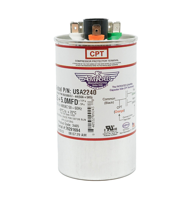 Home  >  HVAC/R Components  >  Capacitors  >  AmRad USA Run Capacitors  >  Dual Section Round  > AMRADUSA 55/5MFD 370/440 RND
